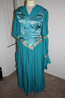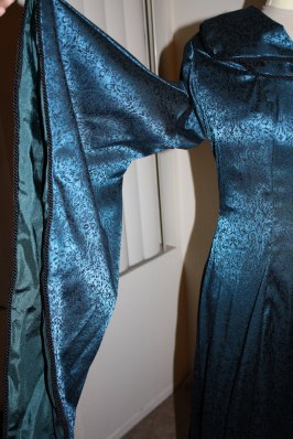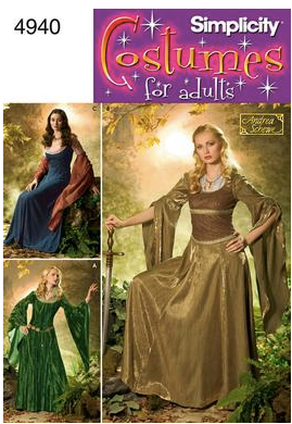 As promised, a pattern review for my “Aes Sedai” dresses.  Luckily, since the movie release of Lord of the Rings, fantasy inspired costume patterns are not too difficult to come by.  Sadly, all of the shapes are similar to those worn by Arwen and Eowyn.  So I decided to make two dresses: one directly from the pattern, and one where I would alter the sleeves a bit so the look wasn’t quite so LotR or evil queen.