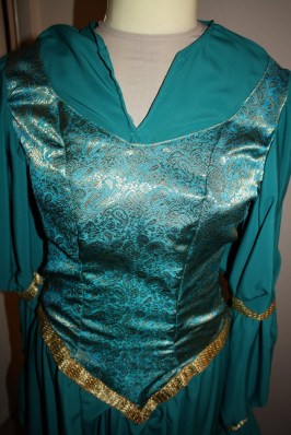 I do think this was a better zipper insertion, but I would also like to go for an invisible zip on this dress.  Eventually I would like to make more realistic costumes without zippers (using more historical type closures) but I don’t think I have the need or experience to do that when I re-work these costumes.  Also – what is with that back skirt seam?  I don’t know why I didn’t re-do that at the time because wow it is racking something awful.
