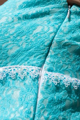 I had just barely enough to make the dress. I used 2 layers of white stretch cotton under the lace. The top layer is thick and textured, the bottom layer is very thin and acts as a lining. I am always suspicious of white, so I figured I was better safe than sorry with the layering. The dress was a bit heavy, but since it was cotton, it wasn’t too hot. I also got some trim from JoAnn’s to add to the dress. I have never been able to wear a dress in this style before, because I could never find one that fits. I also don’t usually wear “trendy” clothes, but I think the lace and color move this dress into the trendy category. Strange to even be pondering how well my dress fits with current fashion trends, because usually I don’t care, but in a way it is sort of exciting to make clothes that could be deemed “fashionable” I guess.