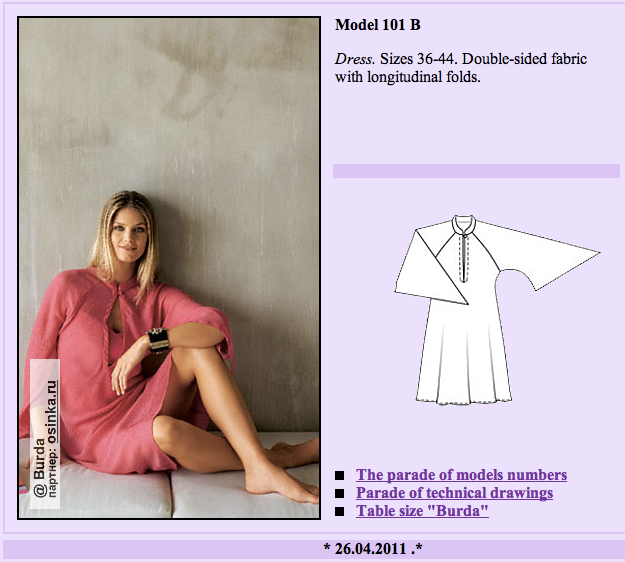As you can see (or maybe as you can’t see), Burda intended for this dress to act as a shift or underdress for some of their sheer chiffon creations. They even re-used it in the May issue: