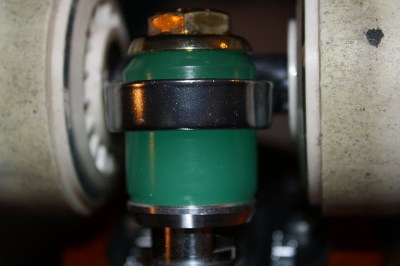I found the green cushions to be more useable than any of the harder urethane cushions for the loop skating. The strange thing was that with the rubber, it seemed to soften as I skated on it more, but with the urethane, it seems to get harder. I want to try this out for a few weeks to see how I like it, then figure out which cushions I am going to stick with. I really wish Roll Line had another level of rubber hardness between their current medium and hard levels. The medium is just too soft, but the hard is too stiff when I have it on the bottom. I still don’t know how I feel about the urethane overall for the loop skating, but it does seem to get rid of a lot of the subcurving problems I was having with the too soft rubber. I may try mixing the yellow rubber/green urethane in the future, but I want to give this set up with the urethane a chance on different floor conditions before mixing it up again.