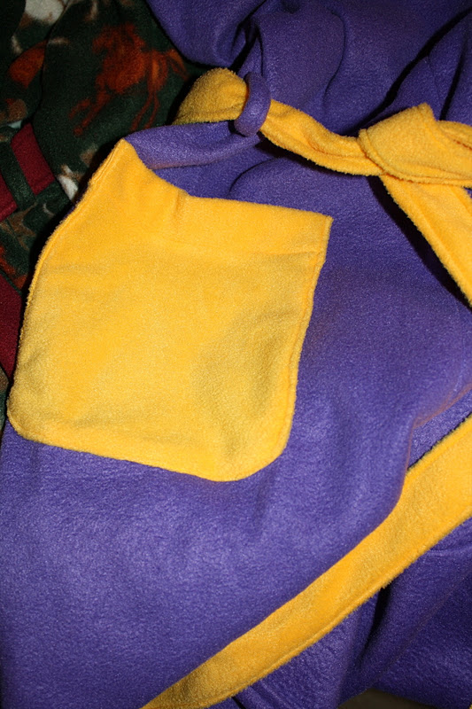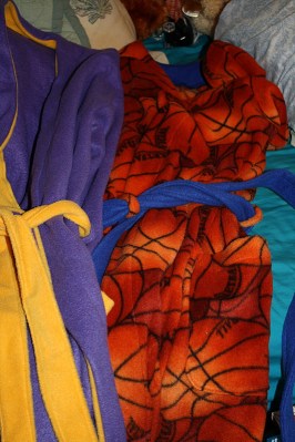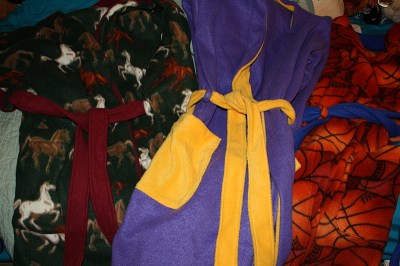 In any case, I made 3 bathrobes in various sizes (and I apologize for poor photos – taken hastily in secret before wrapping):