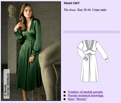 I love the details on this dress! I love the overall shape, the sleeves, the bodice, the skirt. I want to make it as a dress, as a blouse, and as the dress with the other style of sleeves. Burda made it three ways, and I want to as well.