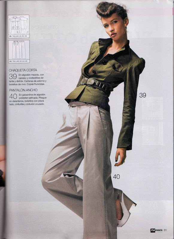 In my head I know these pants won’t look good on me – pale colors and pleated fronts just make my hips look larger than they actually are. And yet, I want these pants! And I want them exactly like they are in the magazine. It is a bit illogical, I admit, yet I think these will be my next project, once I finish with skating costumes and work through my button down shirt funk. I have to admit to pulling out this magazine at least 3 times a week just so I can gaze at this photo. It is becoming an obsession, despite my apprehension over the possible issues with the style. And, well, if these don’t work out in the muslin stage, I have a Burda pattern as a back up plan: