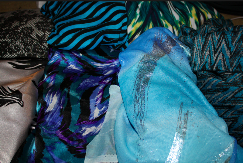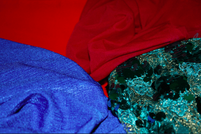 Also quasi-legit – red spandex and mesh, blue textured spandex, and teal sequins