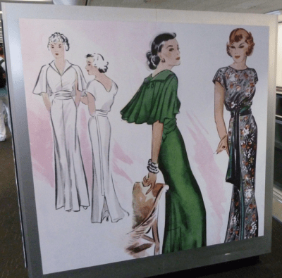 | Large signs had fashion plates and pattern artwork from the late 1800s and early 1900s. |