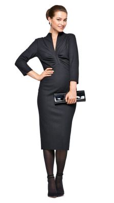 Hmmm, I don't *think* it is a maternity pattern… at least the line drawing seems to indicate that it is a normal pattern anyway. The model photo I think it a bad effect from having too much contrast and awkward clutch placement. I was going to post the garment-only photo, but since it is black you can't see anything other than the outline of the shape. This one went the other way… flash makes all the bulges look extra big.
