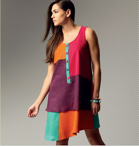 | B5887 – Another Muse pattern. I am sort of liking the color blocking on this knit dress, but I don’t exactly find the dress in the picture super flattering on the model. Something to ponder… |