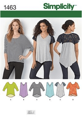 | S1463 – An oversized t-shirt tunic pattern. The style with the lace yoke is interesting, but I think all of these styles are a bit voluminous for my personal style. |