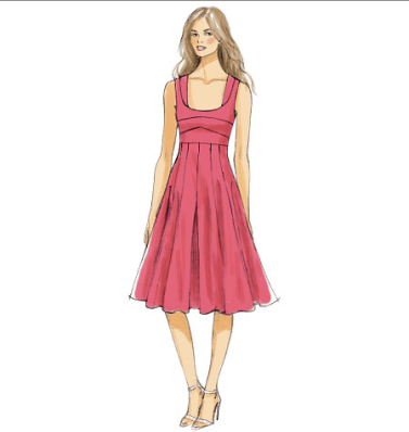 V1399 – A Badgley Mischka dress pattern. Actually I think this is quite clean and chic.