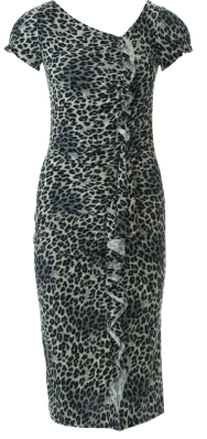 Ok, there is just too much about this dress – the boxy shape, the ruffles on the hem AND the bust, the leopard print. It’s like the 70s and 80s got together and made some crazy lovechild of a dress. Let’s just say I am not a fan… of the pattern itself or of this rendition of it.