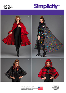 | S1294 – Capes. Maybe the cheap looking fabric is throwing me off but, I feel like there are better cape patterns out there. |