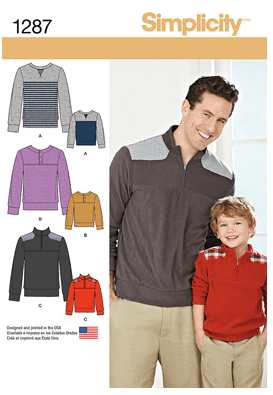 | S1287 – Look, men’s clothes! Would a guy actually wear this? I feel like view C might be acceptable… Any input from people who actually know guys and sew for them? |
