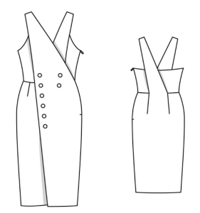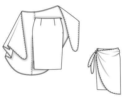 …but, the line drawing – seriously? It’s just a pencil skirt with a sarong?