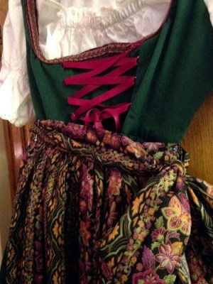 The second dirndl is the one I made for my client’s friend.  She wanted her version to be much more traditional in terms of style and color.  She also gave me all the materials for her outfit, and already owned a top (which I had to alter slightly for fit).  Here is Dirndl #2: