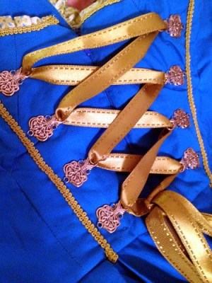 Did it look like the photo/drawing when you were done with it?  Mostly, though I did make a few alterations.  My client wanted wider straps, and I used a blouse from a different pattern.  I also used different trim/lacing style on the bodice and apron than is shown on the photo, but for the most part it looks very much like the line drawing.