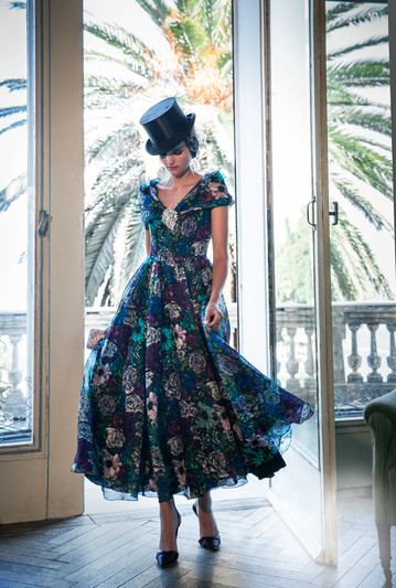 | Not loving the print used here, but the overall style of the dress is rather pretty. |