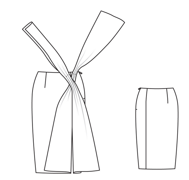 | Pencil skirt with front tie detail. I do sort of like this one. |
