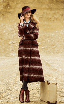Normally the ubiquitous Burda sack dress isn’t terrible enough to be worth commenting on, but this particular sack dress stands out – literally – in a not so good way.  While I appreciate the stripe matching on the sleeves (I mean, wow), this dress looks like it is eating the model in the magazine photo.  She basically looks like she is wearing a torn-up couch.  Not a good look.