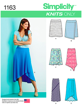 The funny thing is when I first read your question the pattern that popped into my head is the one you already bought (1163). I went looking through my digital stash (I keep photos on my computer to keep track of all my patterns), and you are right – there aren’t a lot of great maxi patterns for knits. Granted, there are a lot of woven patterns that could be adjusted for knits (change the closures and use an elastic waistband), but I can’t find any really good ones off the bat. The other pattern I thought of was McCall’s 7121: http://mccallpattern.mccall.com/m7121-products-49662.php?page_id=108&search_control=display&list=search This is a maxi dress, not just a skirt, but I think because it has a waist seam it would be easy to use for the skirt pattern, then just add an elastic waistband. I couldn’t really find any other patterns specifically for knits, but I hope that helps.