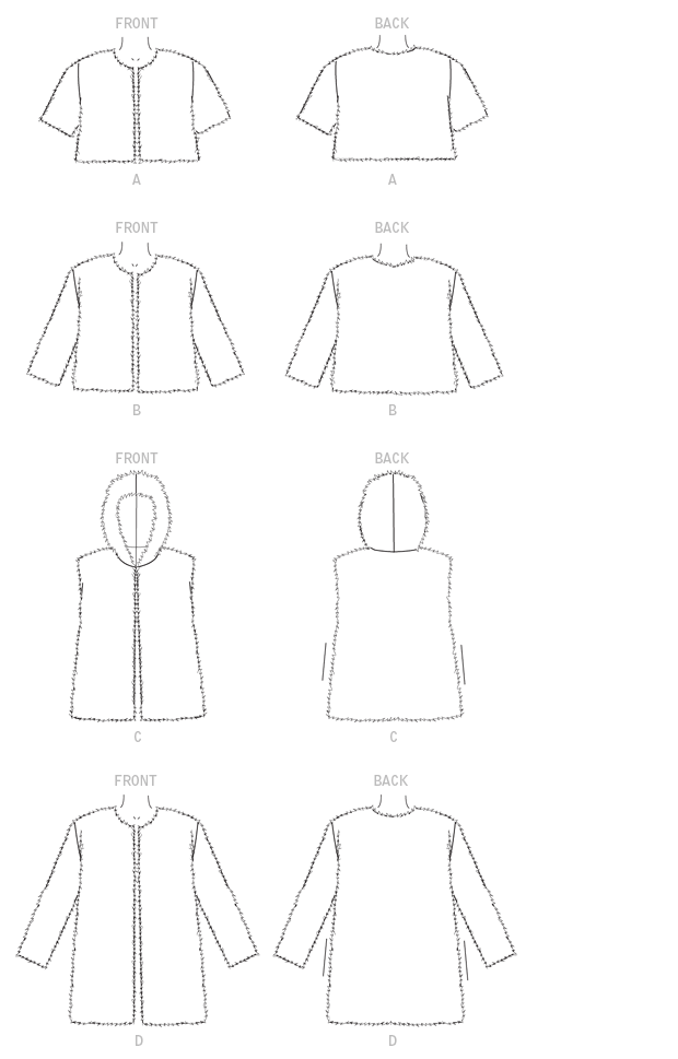 M7262 – Khaliah Ali pattern. There have been a lot of waterfall front coat patterns in the past, but the options for the closures on this pattern makes it a little more versatile.