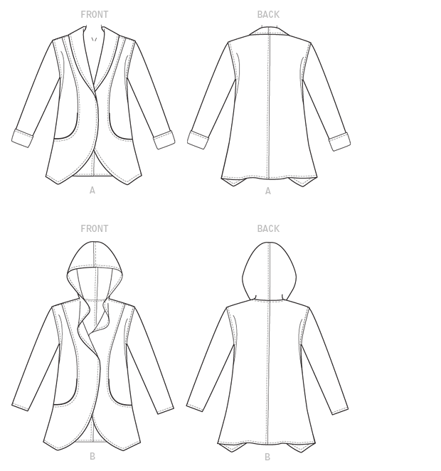 K4141 – Actually a pretty cute jacket! I like the hood options, and the in-seam pockets. The model styling sells it for me.