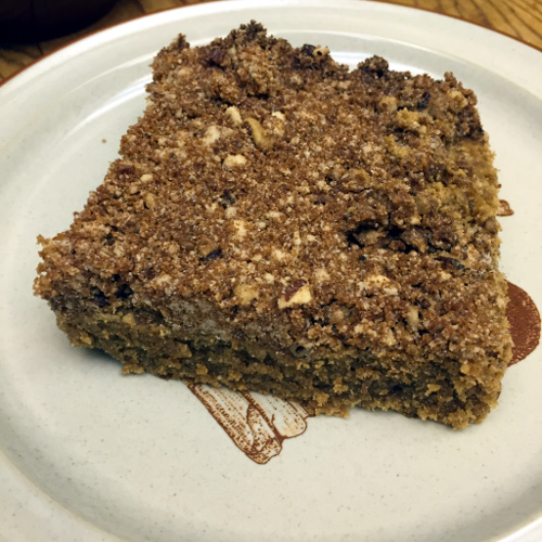 - My mother thought that it was a bit dry, but I think I just used a bit too much of the crumble topping, so my advice is to use enough to cover the top of the cake, but not so much that there is a thick layer of it.