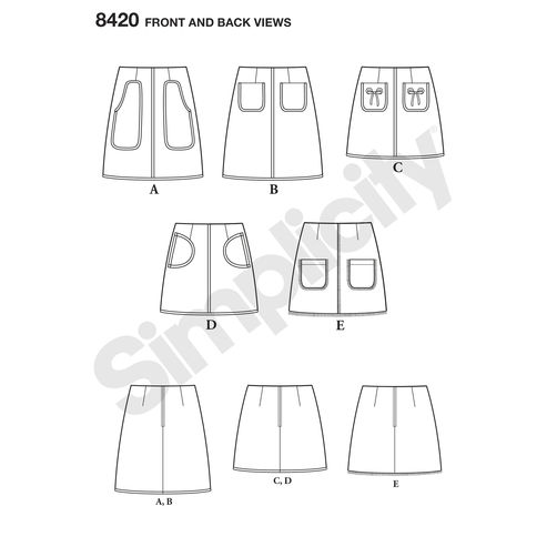 simplicity-pocket-skirt-pattern-8420-front-back-view