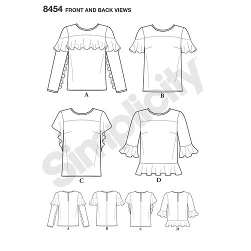simplicity-ruffle-blouse-pattern-8454-front-back-view