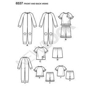 New-Look-onesies-pajamas-pattern-6537-front-back-view