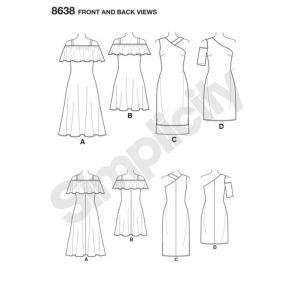 simplicity-exposed-shoulder-dress-pattern-8638-front-back-views Posted on April 20, 2018 by DoctorTDesigns