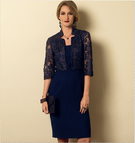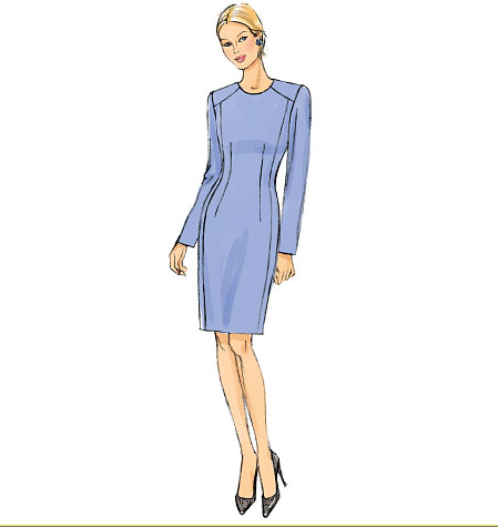 Butterick 6127: Narrow and sculpted.  Using a contrasting jacket adds sharp detail and breaks the vertical line.