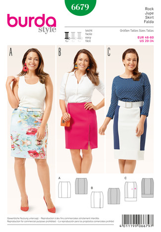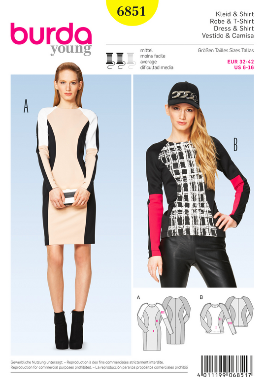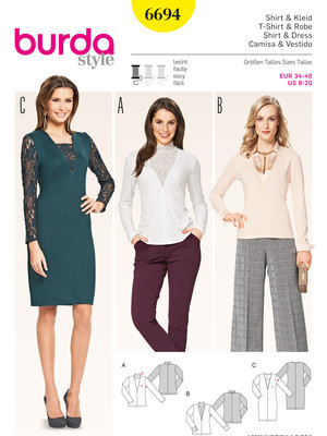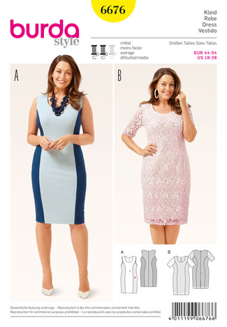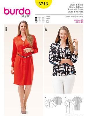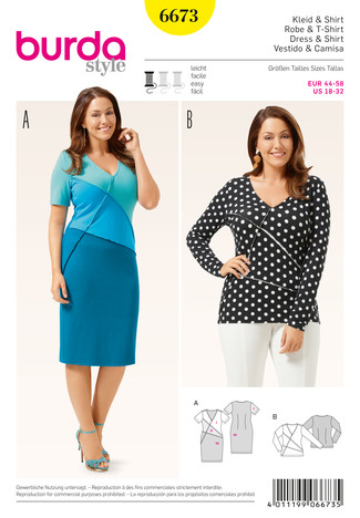 Burda 6547: A slim Burda Plus style with options for asymmetric color blocking.