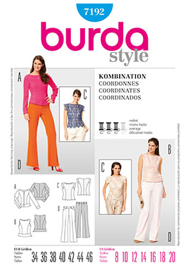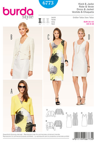 Burda 6943: Geometric edged, slim shapes, with fun bold prints.
