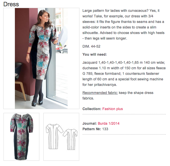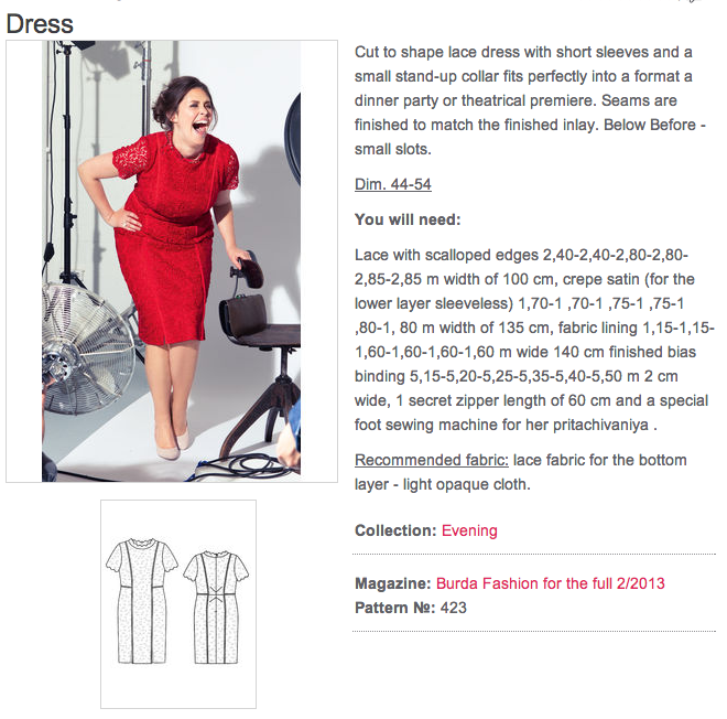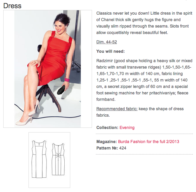 Burda Plus F/W 2013 #424: A nice Burda Plus option with sharp edges and a close, short fit.