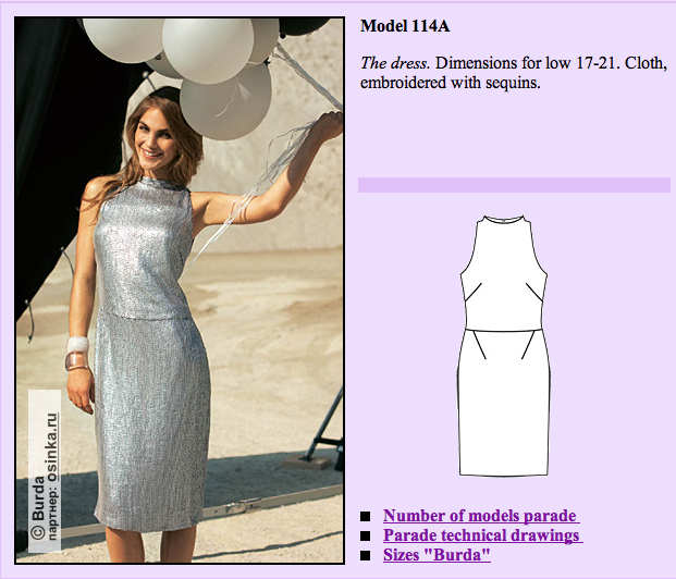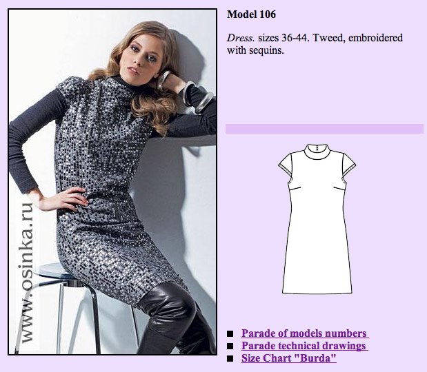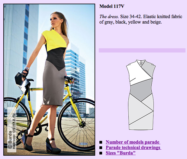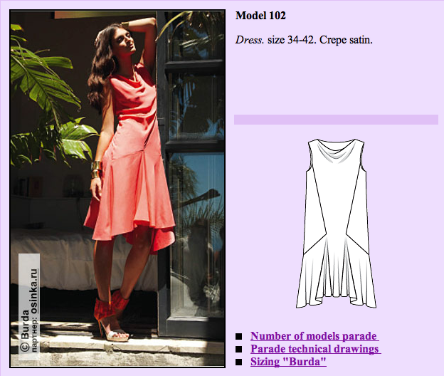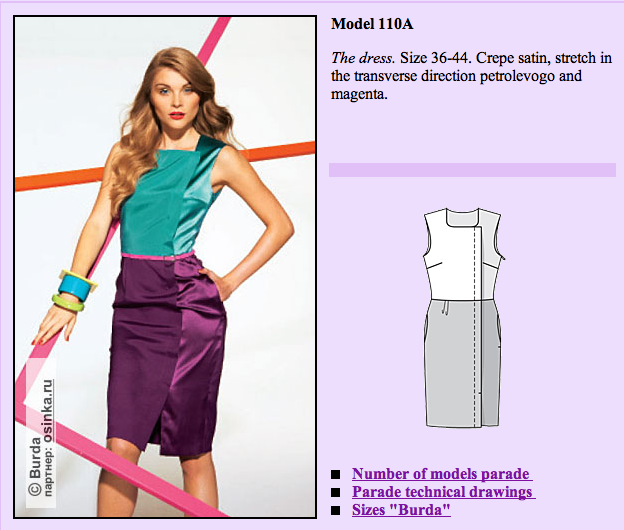 Burda Classic 2012 #0004C: Narrow shape, geometric edges, slinky feel, with broad shoulders.