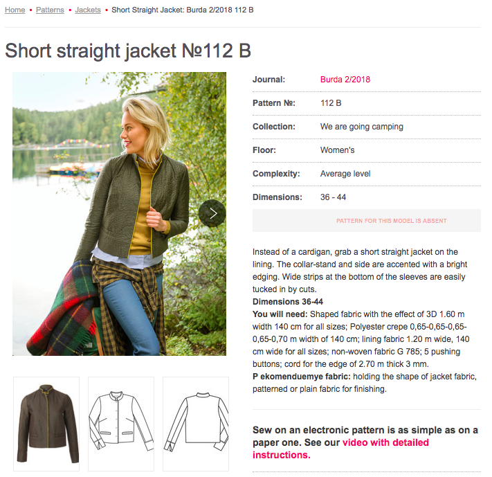 BS-09-2018-127: This Burda Plus pattern has the boxy, cropped silhouette, a slightly asymmetric hem, and some nicely sculpted lapel details.