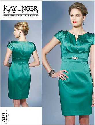 Burda 6712: A slim fit sheath with a strong geometric neckline.