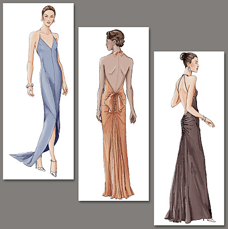 Butterick 6353: Ok, so the train is long and flowing, but the dress itself is very narrow, with geometric edges and lots of potential for beaded trim.