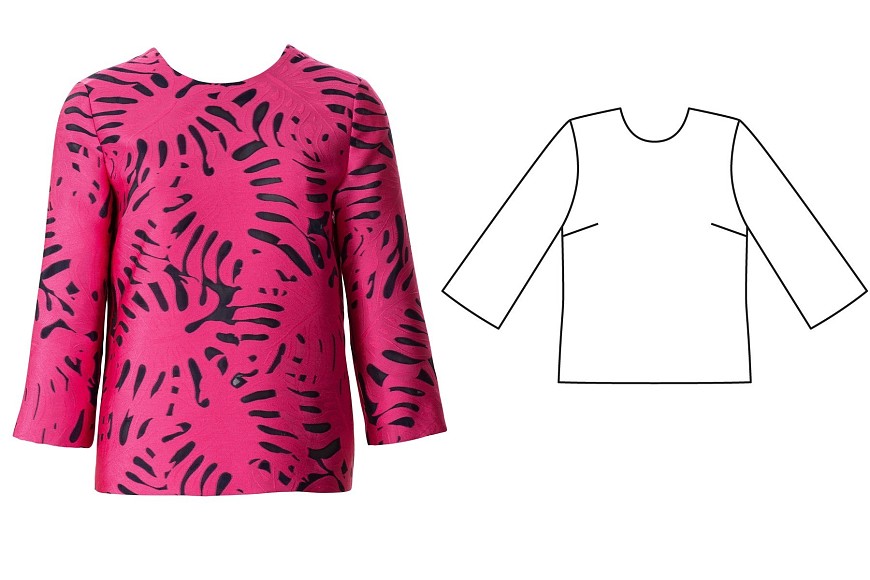 I am probably least excited by this jacket, but only because the other two are so good! The seam lines and angled pockets are a nice way to introduce subtle shaping into this design, while still having it be simple enough to use with a wild print (as shown). I feel like this jacket could be a bit boring in a solid, but I bet it would look fantastic in a tweed or bouclé, or something else with a lot of texture.