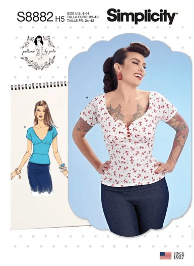 BurdaStyle Magazine 04/2019 #103A and #107, and Simplicity 8889. I was having some difficulty finding Gamine looks this month, but I think the boxy jackets from BurdaStyle and the cropped shirt from Mimi G’s Simplicity line would be great pieces for a Flamboyant Gamine wardrobe.