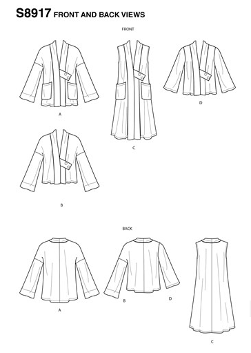 S8917 – I feel like I want to like this jacket, but it seems a bit bulky and heavy for summer. The asymmetric button tab is interesting, but perhaps feels a bit awkward as well? And the proportions seem just a tad off. It’s a style I want to like, but I’m just not really enthralled by the way it looks on the model.