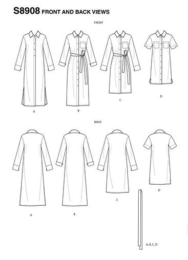 S8908 – I do like the sleek lines of this shirt dress, though the two-toned color blocked version seems a bit wild. I feel like this is another skipable pattern if you have a sizable stash, but I can definitely see the appeal if you don’t have a decent go-to shirtdress style.