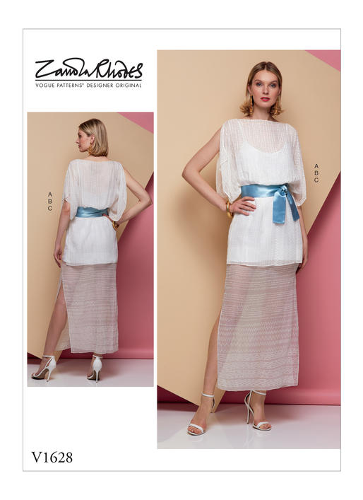V1628 – Zandra Rhodes. This layered dress has an interesting look. It seems like it should be a bunch of separate pieces, but is actually mostly one layered dress. I could see this working well in a mix of lots of interesting fabrics.