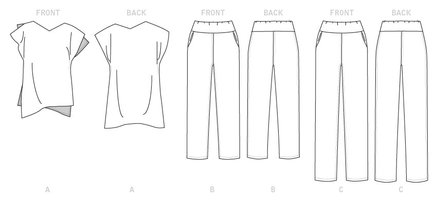 V9375 – When I look at the line drawing I feel like this should be some sort of PJ pattern, but the fashion sketch makes it seem a bit more cool. The model’s outfit takes it a little bit back to PJ land though. I feel like I’d wear a lot of these pieces actually; just not together.