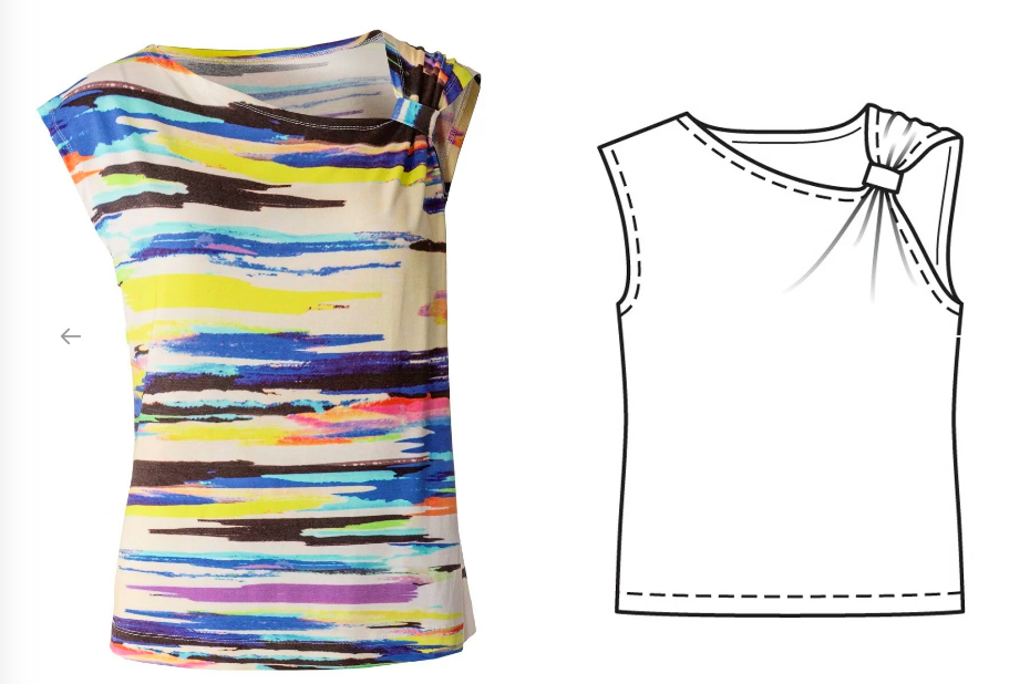 I really like the look of this top. The asymmetry gives it some interest, yet it also looks like it would be very easy to construct. Seems like a great summer project!