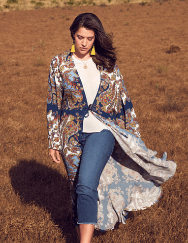 I feel like these skirt/pant/culotte bottoms were a trend for a while, then disappeared, and now are back. I think they look very fun in this bright print, but I’d be curious to see how this pattern would look made up in a solid. I think it has potential to be an interesting design though.