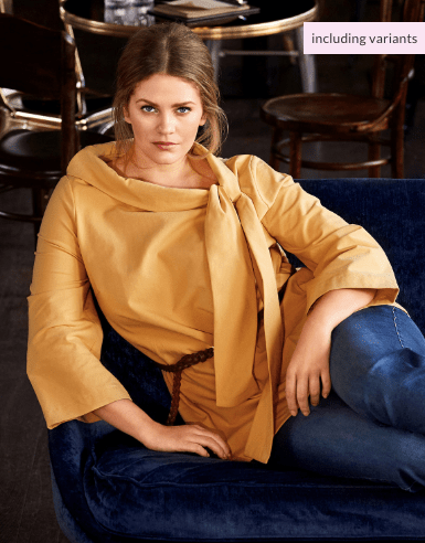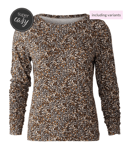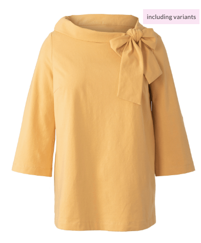This blouse looks quite voluminous in the line drawings, but it actually has a cool drapey look on the models. Definitely a tuck-in top though if you need a bit more waist definition.