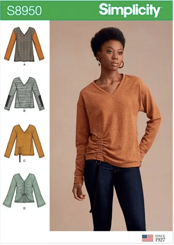 BurdaStyle Magazine 08/2019 #108B, Simplicity S8950, and Vogue V1646. All of these styles have a slightly unconstructed shape, but aren’t quite so strong in the silhouette as the Flamboyant Natural picks. The Burda top could be a really versatile piece depending on fabrication, whereas the Simplicity top is much more casual, and the Vogue pattern is much more professional/work appropriate.