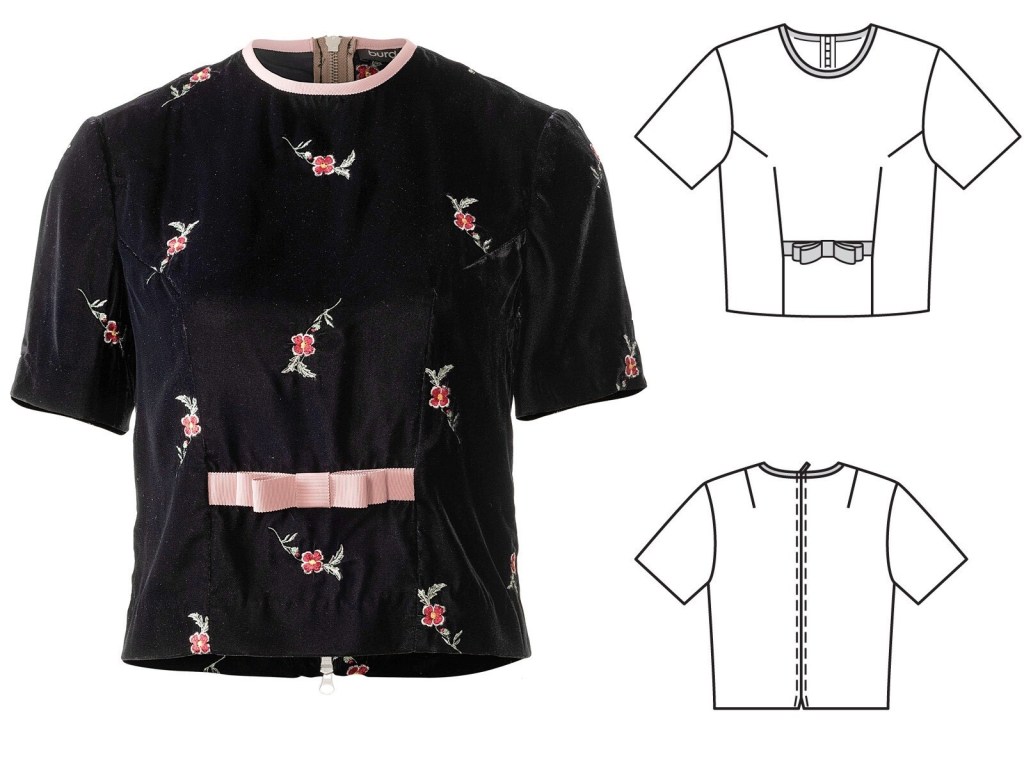 This could be a good basis for a woven t-shirt pattern. It has just enough darts and shaping to prevent it from being too boxy. I’m not sure how I feel about the bow detail – it’s a bit high and seems to awkwardly float in the middle of the top? I think it could probably be a bit better with a bit more length. Or maybe without the bow. But the bones of the pattern are good.